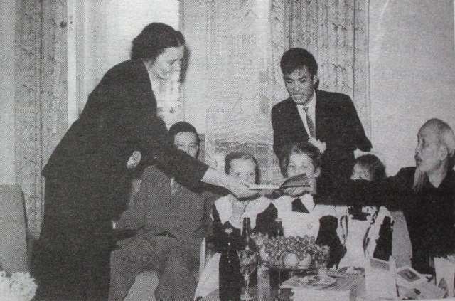 Ông Vũ Khoan dịch cho Chủ tịch Hồ Chí Minh trong buổi Người tiếp học sinh Trường phổ thông mang tên Hồ Chí Minh ở Mát-xcơ-va. Ảnh do nhân vật cung cấp.