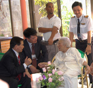Chủ tịch nước Nguyễn Minh Triết thăm bà Men-ba Héc-nan-đê, người đứng thứ nhất từ phải sang là cơ trưởng Nguyễn Nam Liên.