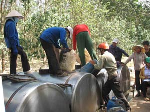 Nhà anh Nguyễn Văn Quyến, công nhân Đội 16, Công ty 74 mấy hôm nay rôm rả toàn là chuyện làm ăn, chuẩn bị đón Tết Nguyên đán cùng với gia đình người em kết nghĩa Rơ Mah Síu ở làng Nú, xã biên giới Ia Chia (huyện Ia Grai). Năm 2009 vừa qua, vườn cao su do hai gia đình góp vốn, đổ công sức chung đã vươn cao, xanh tốt. Chỉ hơn một năm nữa nó sẽ chảy ra những dòng nhựa trắng, mang lại thu nhập cao cho họ. Ngày mới kết nghĩa anh em, Quyến chẳng biết trao đổi, tâm sự thế nào với gia đình Rơ Mah Síu. Thế rồi anh tự học tiếng dân tộc, tìm hiểu phong tục, tập quán của đồng bào và đã “giao tiếp” được với bà con J’Rai. Thời gian đầu, Quyến và vợ con sang giúp nhà Rơ Mah Síu ăn ở vệ sinh, hướng dẫn họ cách chăm sóc, phòng, chống sâu bệnh cho cây cao su. Sau đó, hai nhà bỏ tiền chung để làm vườn cao su mới. Cứ như vậy, họ trở nên thân thiết và gắn bó keo sơn với nhau lúc nào không hay. Rơ Mah Síu nói: “Mình coi anh Quyến như anh ruột đấy. Làm chung với anh, mình học được kỹ thuật trồng cây, chăm sóc cây, cạo mủ cao su và trồng xen canh cây ngắn ngày để có thêm thu nhập”. Còn Nguyễn Văn Quyến nhủ nhỉ: “Chính gia đình Rơ Mah Síu giúp chúng tôi có nhiều kinh nghiệm để sống trên mảnh đất này”.