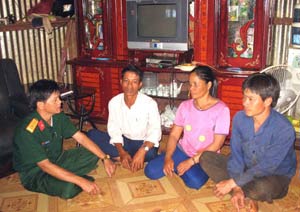 Đến Công ty 75, tôi được Trung tá Bùi Phước Nhạc, Đội trưởng Đội 1 đưa đến gia đình anh Kpui H’Sinh, người dân tộc J’Rai ở làng Ngo Rông, xã Ia Krel, huyện Đức Cơ. Nhà Kpui H’Sinh kết nghĩa anh em với nhà anh Cao Như Thăng từ hai năm nay. Chẳng hiểu thế nào, từ quê hương Nghệ An vào làm công nhân ở đây, Cao Như Thăng cảm thấy mình có “duyên” với người J’Rai đến thế. Anh nói: “Khi được làm quen, kết nghĩa anh em với nhà Kpui H’Sinh, vợ con tôi lo lắm. Lo vì mình không biết tiếng, lo vì chưa biết giúp đỡ nhau như thế nào”. Được lãnh đạo công ty, chỉ huy đội hướng dẫn, giúp đỡ, hai nhà trước tiên đi thăm hỏi, tìm hiểu nhau. Vợ chồng anh Thăng giúp gia đình Kpui H’Sinh chọn giống cây trồng, chăm sóc và cạo mủ cây cao su. Dần dần, vợ chồng Kpui H’Sinh quen việc, nắm được kỹ thuật chăm sóc và khai thác vườn cây nhận khoán. Hội thao năm 2009 vừa qua, Kpui H’Sinh đã đạt danh hiệu thợ cạo mủ cao su giỏi. Anh khoe: “Đất nhà mình hết rồi. Được anh chị Thăng tư vấn, giúp đỡ, mỗi tháng vợ chồng mình cạo mủ cũng thu được 3-4 triệu đồng mỗi người. Năm tới, anh Đăng còn giúp nhà mình chăn nuôi heo, nuôi bò và mở rộng vườn cao su, vườn tiêu nữa”. Vợ Kpui H’Sinh phụ họa theo: “Anh Thăng biểu gì, vợ chồng em làm theo đó”. Trung tá Bùi Phước Nhạc cho chúng tôi biết thêm, 10 cặp gia đình người Kinh, người dân tộc thiểu số kết nghĩa ở đội cho thấy việc giúp nhau phát triển kinh tế, xây dựng buôn làng văn hóa rất hiệu quả. Các hủ tục lạc hậu của đồng bào như con gái uống rượu say, sinh con nhiều, tảo hôn, mê tín… giảm đáng kể.