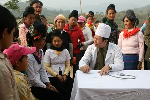 Thiếu tướng, PGS, TS Hoàng Mạnh An khám bệnh, tư vấn sức khỏe cho bà con vùng cao. Ảnh do nhân vật cung cấp.