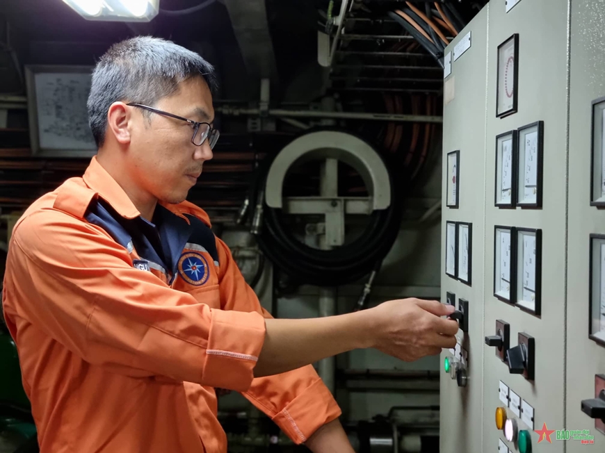 | Anh Nguyễn Thế Anh làm nhiệm vụ chuyên môn trên tàu SAR 412. |