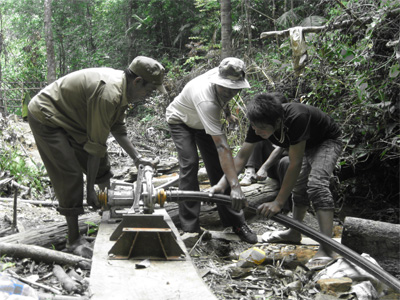Đoàn kiểm tra phát hiện và phá hủy một máy hút nước khai thác vàng ở Đăk Môn, huyện Đăk Glei.
