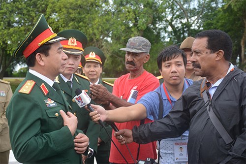 Khoảng 17 giờ (giờ địa phương) ngày 8-9-2017, máy bay đưa chúng tôi đến hòn đảo kiên cường-ngọn cờ đầu của châu Mỹ La-tinh. Trong xanh thăm thẳm của phía trên là bầu trời, bốn bề là biển cả, xuyên qua các tầng mây lãng đãng bay, nắng vàng rực rỡ rọi xuống đất nước Cuba tạo nên một khung cảnh khá lãng mạn với những người lần đầu đáp xuống Sân bay quốc tế Jose Marti La Habana. Khi máy bay hạ dần độ cao, trước mắt tôi, những ngôi làng khá giống vùng thảo nguyên Mộc Châu (Sơn La) và những con đường đất đỏ sao lạ mà thấy quen quá. Cảm giác ấy nhân lên khi hai bên đường vào Thủ đô hoặc dọc quốc lộ từ sân bay về các địa phương nối tiếp những vườn xoài xanh ngắt và những hàng dừa lúc lắc quả đặc trưng vùng đất Nam Bộ. Mùa này ở nước bạn, những cây phượng vĩ vẫn đỏ rực là nơi nghỉ chân của đàn chim sáo trước khi chúng chao theo những cánh cò trắng nghiêng ra cánh đồng mía bạt ngàn... Trong đoàn công tác, có người may mắn được trở lại Cuba như Thiếu tướng Lê Văn Cầu, Phó cục trưởng Cục Đối ngoại, Bộ Quốc phòng hay Thượng úy Lê Thanh Tùng, người 11 năm học tập trên đất bạn nên anh không chỉ thông thạo ngôn ngữ mà còn rành rọt khá nhiều điều về cuộc sống, con người Cuba. Với đa số thành viên khác trong đoàn, kể cả Tổng Tham mưu trưởng Phan Văn Giang cũng là lần đầu tiên đặt chân đến nơi đây. Tuy nhiên, cảm nhận của mọi người là đất nước, con người Cuba thật gần gũi, thân tình với Việt Nam. Quá trình những ngày lưu lại, làm việc với các đồng chí Cuba và những người dân chúng tôi gặp, điều đó là hiện thực, gắn liền với những câu chuyện rất sinh động. Chính vì thế, sau nghi thức đón của Tổng Tham mưu trưởng Bộ Các lực lượng vũ trang cách mạng Cuba tại Lăng Cacahual, trả lời phỏng vấn các cơ quan báo chí nước bạn, Thượng tướng Phan Văn Giang nói, ngoài trọng trách nhiệm vụ của Bộ Tổng Tham mưu, cá nhân ông rất mong đợi và phấn khởi với chuyến thăm chính thức đến Cuba. Tổng Tham mưu trưởng Phan Văn Giang thêm một lần nữa khẳng định, nhắc lại hình ảnh, sự kiện mà Chủ tịch Phidel Castro đến đất lửa Quảng Trị năm 1973, khi cuộc kháng chiến chống Mỹ, cứu nước của nhân dân Việt Nam đang trong giai đoạn ác liệt, gian khổ. Phidel Castro-nguyên thủ quốc gia đầu tiên trên thế giới đến tận vùng đất Việt Nam vừa mới giải phóng. Năm 1966, tại Đại hội Đoàn kết 3 châu: Á - Phi - Mỹ La-tinh, Chủ tịch Phidel Castro dõng dạc tuyên bố với thế giới: “Vì Việt Nam, Cuba sẵn sàng hiến dâng cả máu của mình”. Câu nói ấy trở thành một trong những biểu tượng hùng hồn trong quan hệ giữa hai nước.