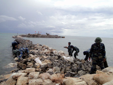 | Xây dựng công trình trên đảo Phan Vinh. Ảnh: Thanh Kim Tùng. |
