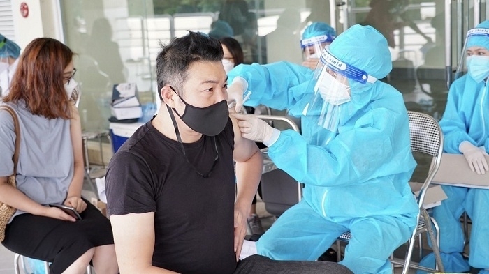 | Cán bộ Trung tâm Y tế quận Nam Từ Liêm tiêm chủng phòng Covid-19 cho người dân trên địa bàn quận. Ảnh: laodongthudo.com.vn |