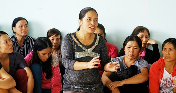 Công nhân Công ty TNHH Kimono Japan phản ánh với cơ quan chức năng về tình trạng nợ đọng bảo hiểm xã hội.