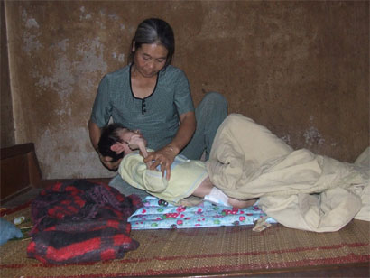 | BMVN đã cướp đi con trai, giờ đây chị Thái Thị Hồng còn duy nhất người con gái tật nguyền. Ảnh: Trung Kiên. |