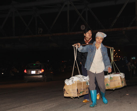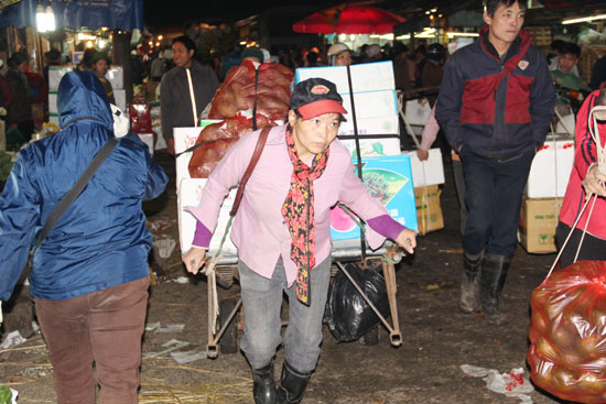 Qua tìm hiểu, chúng tôi được biết, thông thường, mỗi đêm một người gánh hàng thuê gánh được hơn chục chuyến, mỗi chuyến nặng 20-30 kg với tiền công trả khoảng 5 ngàn đồng một chuyến. Nếu gặp người chủ hàng rộng rãi thì được 8 – 10 ngàn. Người nào khỏe hơn thì gánh được nặng hơn, mỗi chuyến có thể gánh thêm 10 – 20 kg. Như thế sẽ kiếm thêm được khoảng 2-3 ngàn.