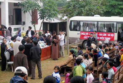 Tại xã Vĩnh Lộc, bên cạnh quần áo mới, dép nhựa cho học sinh, đoàn đã quyên góp tại chỗ gần 5 triệu đồng để ủng hộ trường mầm non của xã. Hay khi nghe tin xã đã được các cấp chính quyền hỗ trợ xây lại một ngôi chùa mới tại xóm Chùa, đoàn đã tới thăm chùa và ngay tại đây, đoàn đã quyên góp tặng xã 7 triệu đồng để chỉnh trang chùa. Có người nhận sẽ tặng tượng và chở tới tận chùa trong thời gian tới.