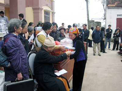 | Như ở các địa điểm khác, quà cứu trợ được trao tận tay cho người dân ở xã Vĩnh Lộc, huyện Can Lộc, tỉnh Hà Tĩnh. |