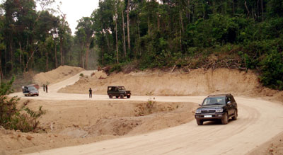 Đoạn đường vừa thi công mặt bằng qua rừng Đăk Sú (Kon Tum), một trong những khu vực nhiều bom mìn, đã được làm “sạch”. Ảnh: THANH KIM TÙNG