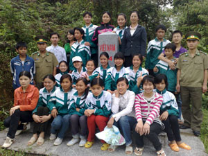 Học sinh Trường Trung học cơ sở Mường Khương trong phong trào "Em yêu cột mốc quê em”.
