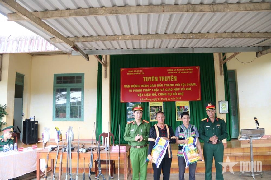 Thượng tá Trần Văn Sơn, Trung đoàn trưởng Trung đoàn 720, khẳng định: “Chúng tôi xác định tuyên truyền, vận động nhân dân chấp hành pháp luật là nhiệm vụ xuyên suốt. Không chỉ dừng lại ở việc giao nộp vũ khí, mà còn là nâng cao ý thức tham gia giao thông, không đốt pháo nổ, chăm lo sản xuất, giữ gìn cuộc sống bình yên từ cơ sở. Khi nhân dân hiểu rõ quyền lợi, trách nhiệm của mình thì an ninh trật tự sẽ được giữ vững bền vững”.