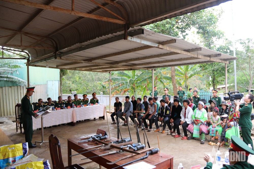 | Người dân tự giác giao nộp vũ khí, vật liệu nổ và công cụ hỗ trợ. |