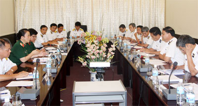 Thiếu tướng Hồ Thủy nắm tình hình thực hiện Đề án thí điểm chăm sóc sức khỏe quân nhân tại ngũ theo hình thức BHYT tại Quân chủng Hải quân.