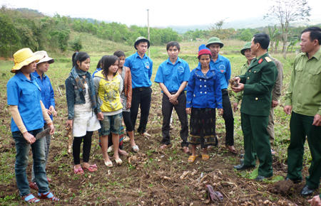Cán bộ Đoàn KT-QP 337 và các trí thức trẻ tình nguyện lao động giúp nhân dân. Ảnh: Hoài Vinh
