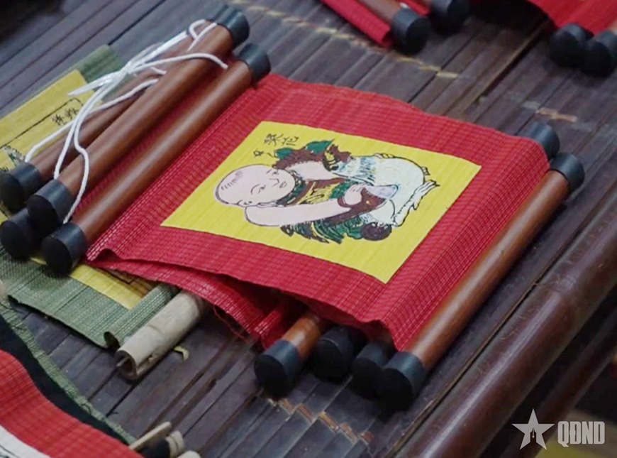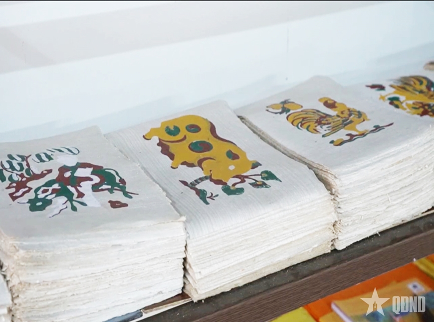 | Mỗi bức tranh Đông Hồ là một câu chuyện riêng, được thắp lên bằng những sắc màu tự nhiên của đất trời: Vỏ điệp óng ánh, son đỏ ấm, hoa hòe vàng dịu, lá tràm xanh mát. |