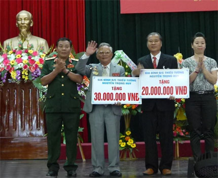 | Gia đình Thiếu tướng Nguyễn Trọng Huy ủng hộ cho Ban liên lạc xây nhà tình nghĩa. |