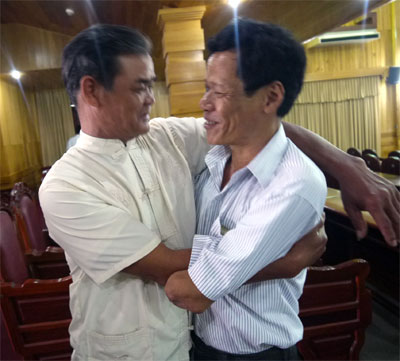 Theo chương trình, 8 giờ mới bắt đầu nhưng các CCB đã đến từ rất sớm. Đông nhất có lẽ là các CCB địa bàn Quảng Nam. Chi hội Đại Lộc ra dự 100 người trong số 300 CCB của huyện, rồi Duy Xuyên, Quế Sơn… Những anh nông dân lam lũ trên cánh đồng, gương mặt đen cháy nay sáng lên, hân hoan trong cái ôm thật chặt của đồng đội. Mọi người giãn ra khi anh Ngọc (Đà Nẵng) cõng anh Sơn vào hội trường. Anh Dũng bị mù và cụt hai tay ở Đà Nẵng, anh Tuấn ở Bình Định vừa cụt hai tay vừa bị thương ở chân cũng được bạn dẫn đi. Ai nấy ùa vào thăm hỏi, có người rơm rớm lệ khi nhớ lại trận đánh đồng đội mình bị thương. Nhiều nước mắt nhất là những phụ nữ. Họ là vợ, là người thân của các liệt sĩ hay của chỉ huy Sư đoàn đã mất. Thoáng rụt rè nhưng rồi tình cảm của những người lính làm họ hòa nhập rất nhanh. Chị Tuyết, em của liệt sĩ Lê Khắc Đông tâm sự: “Mọi năm mẹ tôi đi. Năm nay mẹ ốm. Nghe các anh mời ra gặp mặt, rồi nhận quà, sắp tới sẽ làm nhà tình nghĩa nữa. Cả nhà ai cũng mừng lắm”.