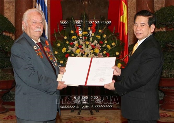 | Ngày 7-1-2011, tại Phủ Chủ tịch, Chủ tịch nước Nguyễn Minh Triết trao quyết định Quốc tịch Việt Nam cho ông Kostas Sarantidis-Nguyễn Văn Lập. Ảnh: TTXVN |