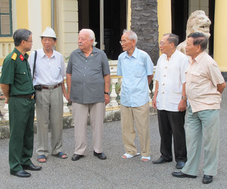 | Ông Kostas Sarantidis Nguyễn Văn Lập trò chuyện cùng Đại tá Lê Xuân Khanh, Phó Cục trưởng Cục Đối ngoại (Bộ Quốc phòng) và đồng đội chiến đấu năm xưa. Ông Võ Văn Minh đứng ngoài cùng bên phải |