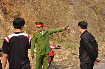 | Thượng uý Trần Ngọc Toản cùng đồng đội trong một lần tham gia phá án. |