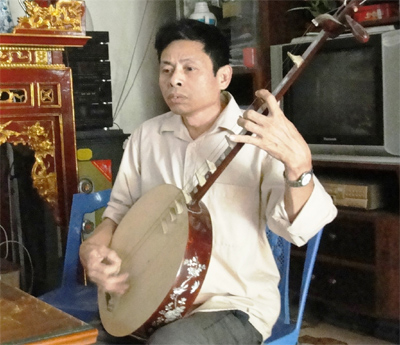 Ông Thuận với cây đàn nguyệt những mong giữ nét văn hóa truyền thống.