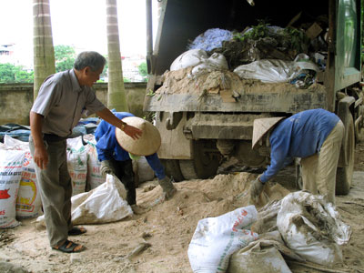 - Chưa có trụ sở, rác chưa qua phân loại cũng đưa về vườn nhà; xe chở rác, dụng thu gom rác cũng đưa hết về đây. Nếu không có thuốc khử ruồi thì các anh sẽ thấy ruồi trong nhà nhiều như …trấu.
