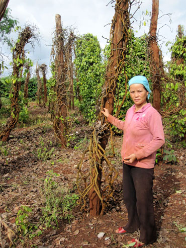 Nông dân huyện Chư Sê (Gia Lai) bên vườn tiêu tan hoang