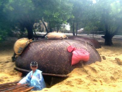 Cũng giống như Phú Hòa, người dân ở các xã ven biển của huyện Bình Sơn (Quảng Ngãi) lại có cách làm hầm tránh bão dã chiến rất độc đáo, hiệu quả. Cách làm rất đơn giản: Trong vườn từng gia đình, người dân đào sẵn hố đất, khi bão về thì lật úp chiếc thuyền thúng, rồi chằng buộc kỹ là có ngay một chiếc hầm tránh bão, bảo đảm an toàn tuyệt đối về tính mạng.