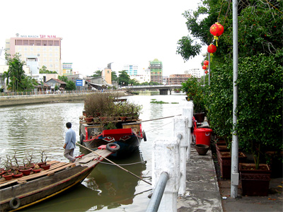 Ngoài đường bộ, hoa kiểng còn đến với TP. Cần Thơ bằng ghe, thuyền...