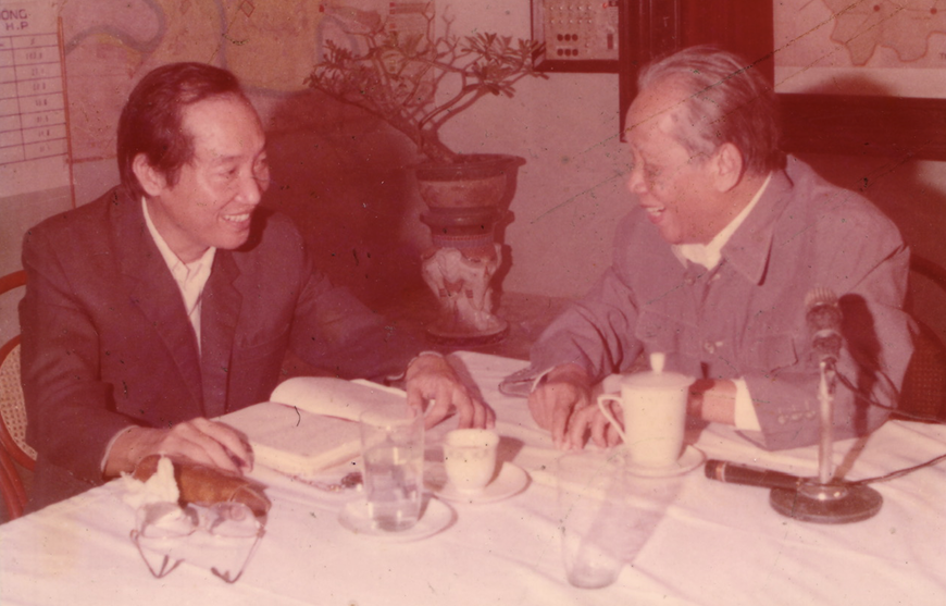 | Bí thư Thành ủy Hải Phòng Đoàn Duy Thành báo cáo Tổng Bí thư Lê Duẩn về chiến lược phát triển Cảng Hải Phòng năm 1981. Ảnh tư liệu |