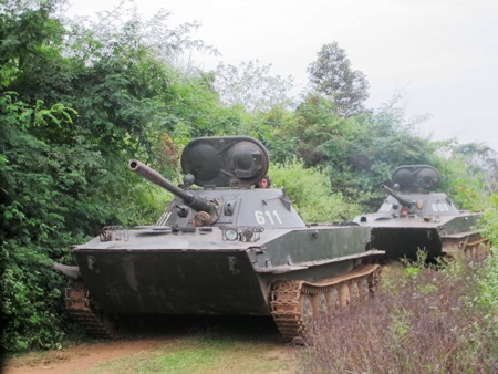 Đúng dịp kỷ niệm 38 năm Quốc khánh nước bạn, chúng tôi đến sư đoàn và được Trung tá Vông-phết Phêng-pha-nít, Phó sư đoàn trưởng Chính trị kiêm Chủ nhiệm Chính trị sư đoàn trực tiếp đưa đến thăm Tiểu đoàn xe Tăng-thiết giáp 614. Đơn vị này thành lập năm 1980 trên mảnh đất Cố đô Luông Phra-băng. Thiếu tá On Phăn-tha-vông, Phó tiểu đoàn trưởng quân sự mang đậm nét đặc trưng của thanh niên Lào, khuôn người vừa phải, nước da ngăm đen. Anh nhẹ nhàng giãi bày, đơn vị có trong biên chế nhiều chủng loại xe, thời gian cũng đã làm cho chúng không được đồng bộ vì thế đòi hỏi chiến sĩ xe tăng phải nỗ lực để đảm bảo tốt về kỹ thuật. Thời gian vừa qua, tiểu đoàn với sự hỗ trợ của sư đoàn và cấp trên đã củng cố, nâng cao khả năng sẵn sàng chiến đấu của các loại vũ khí, trang bị có trong biên chế.