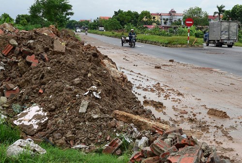 Mỗi ngày có thêm hàng tấn phế thải xây dựng đổ trộm xuống lòng đường tại xã Đại Mạch (huyê%3ḅn Đông Anh).