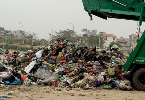Xe thu gom rác thải cũng đổ trô%3ḅm rác tại khu vực phường Xuân Phương.