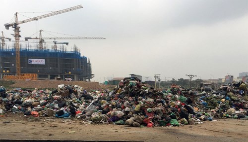 Bãi rác tại tổ dân phố số 3, phường Xuân Phương, quâ%3ḅn Nam Từ Liêm - nơi đang xây dựng cầu vượt đường sắt.