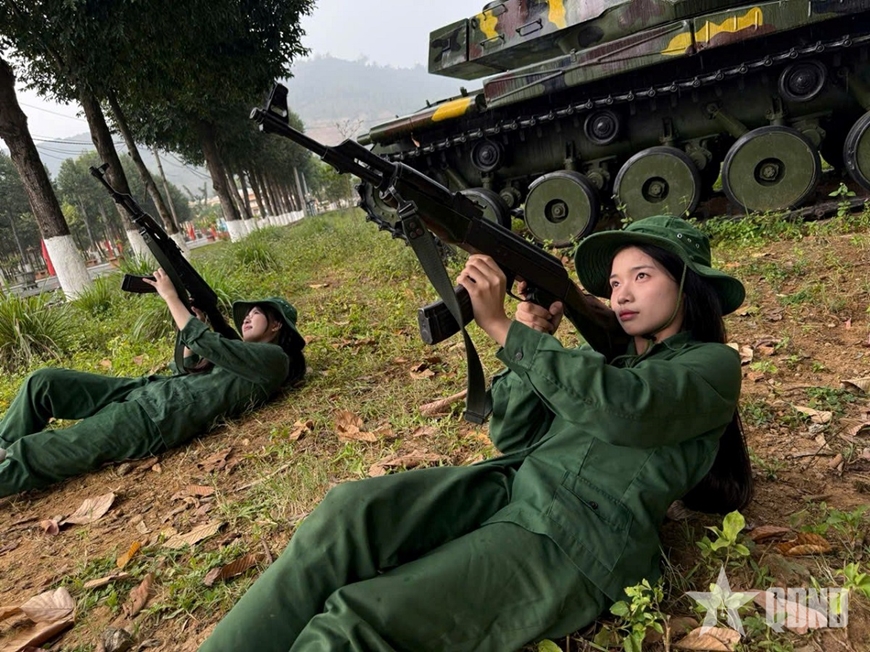 Dáng người nhỏ nhắn, thư sinh, nụ cười hồn nhiên, song mỗi khi giương súng thực hiện động tác bắn phương tiện bay không người lái (UAV) và máy bay bay thấp, bổ nhào, sinh viên Lê Ngọc Diệp, Lớp xét nghiệm y học 13A đều được cán bộ biểu dương vì có khả năng nhận định, đánh giá, xử trí tình huống nhanh và chính xác. Ngoài thế mạnh là các môn băng bó, cứu thương, cứu đuối do liên quan trực tiếp đến ngành nghề đào tạo trên giảng đường đại học, khi khoác lên mình bộ quân phục màu xanh, Lê Ngọc Diệp và các “bóng hồng” luôn nêu cao tinh thần tự học, tự rèn, nâng cao trình độ bản thân. Chiều nào cũng vậy, trước giờ xuống lớp, đội ngũ sinh viên lại hào hứng tham gia hội thao, kiểm tra, đánh giá kết quả huấn luyện, học tập. Lăn, lê, bò, trườn, đâm lê, đánh báng... trải qua nắng lửa thao trường, các “bóng hồng” đều tiến bộ, trưởng thành nhanh chóng.