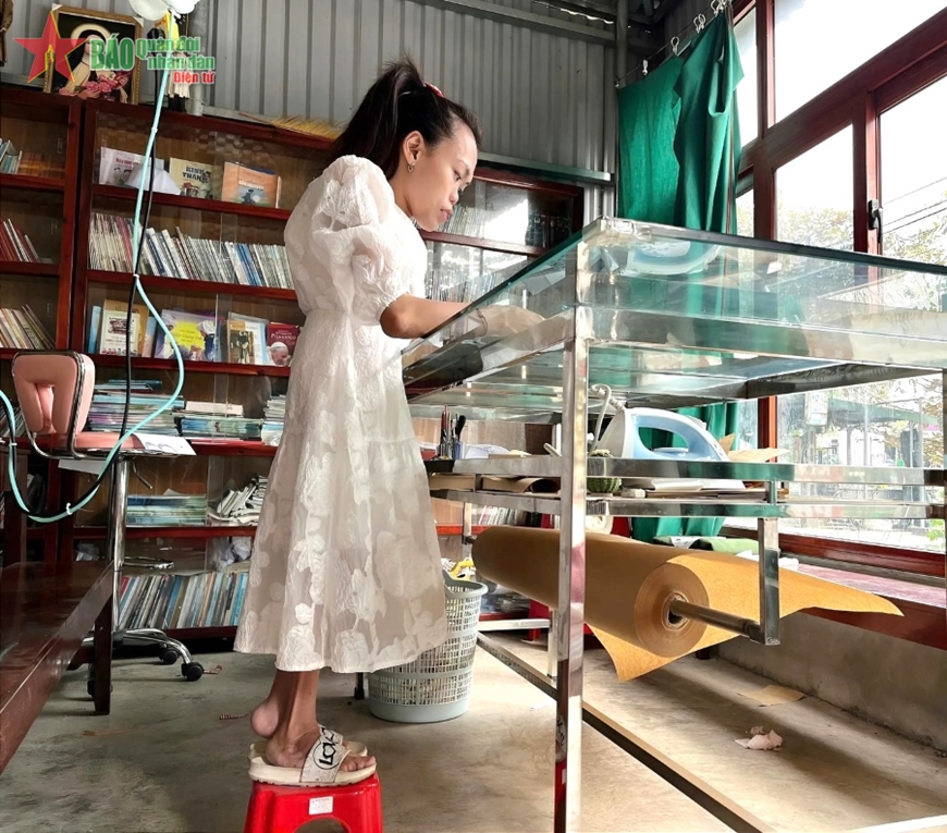 Chị Vũ My Lan làm việc ở tiệm may của mình. Ảnh: NVCC