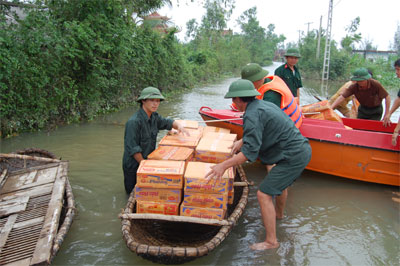 Sau nhiều ngày bị cô lập trong nước lũ, lương thực, nước uống đã cạn, những chuyến hàng cứu trợ của bộ đội là niềm mong mỏi của rất nhiều hộ dân vùng tâm lũ tỉnh Nghệ An...