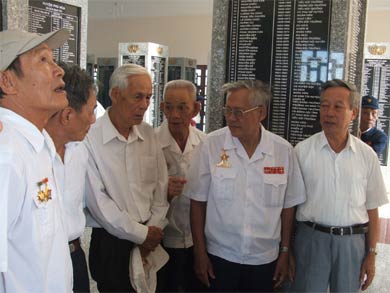 | Các chiến sĩ tàu không số gặp mặt tại lễ kỷ niệm 45 năm ngày chuyến tàu không số đầu tiên cập bến Vũng Rô. Ảnh: Xuân Hiếu. |
