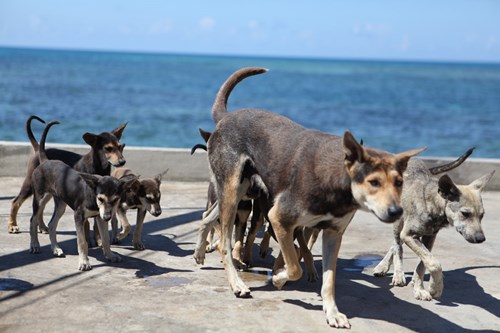 Chó trên Điểm C, đảo Thuyền Chài rất gần gũi và quý mến những vị khách đến thăm đảo. |
