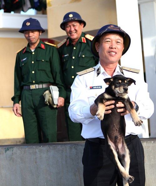 Chuẩn Đô Đốc Nguyễn Viết Nhiên, Phó tư lệnh Quân chủng Hải quân cùng đoàn công tác cũng rất gần gũi với các chú chó trên đảo Tiên Nữ. |