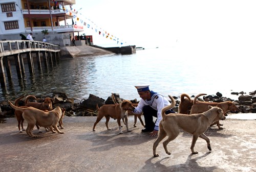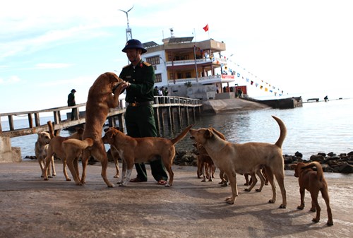 Đến bất kỳ đảo nào ở Trường Sa, những chú chó luôn là hình ảnh quen thuộc và là bầu bạn không thể thiếu của cán bộ, chiến sĩ đóng quân trên đảo. Có lẽ nhờ được các bộ đội trên đảo rèn cho tính kỷ luật, nền nếp, nên dù đông như thế nhưng chúng “sinh hoạt” rất có trật tự nề nếp. Ở với bộ đội quen nên những chú chó ở đây cũng được rèn luyện ý thức kỷ luật y như bộ đội. Chỉ cần nhìn thấy phòng làm việc nào bỏ giày dép ngoài bệ cửa thì chúng biết ngay là không được đi giày dép vào phòng và không con nào dám bén mảng đi vào trong.