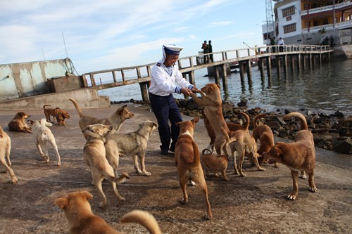 Binh nhì Nguyễn Ngọc Quế, chiến sĩ Phân đội 3, đảo Trường Sa Đông kể cho tôi nghe về chú chó có tên là "Bin", chỉ huy đầu đàn của hơn 40 con chó trên đảo. Chó đầu đàn là chó đực có uy thế về sức mạnh, nhưng cơ bản nhất chúng là con đực sống lâu năm nhất ở đảo. Những con đực đến sau sẽ tự động nhận ra được điều đó và nhất cử nhất động đều phải phục tùng con đầu đàn. Dù đàn chó tới 40 con, nhưng chúng ít khi tranh giành, chiến đấu lẫn nhau, mà răm rắp tuân theo sự chỉ đạo của chú chó đầu đàn.