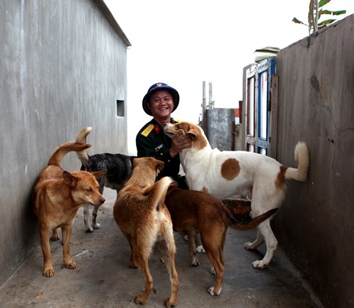 Chiến sĩ đảo Trường Sa Đông gần gũi, thân thiện cùng đàn chó những ngày nghỉ, giờ nghỉ. |