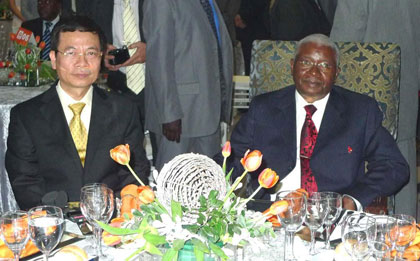 Tổng thống Mô-dăm-bích Ác-man-đô Ê-mi-li-ô Ghê-bu-da và Phó tổng giám đốc Viettel Nguyễn Mạnh Hùng tại lễ khai trương Movitel. Ảnh: G.G.