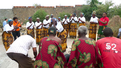 Từ sáng sớm, 12 phụ nữ Mô-dăm-bích, trong trang phục váy hoa truyền thống, đã tụ tập trên một bãi đất trống bên cạnh trạm Movitel. Bên cạnh là một dàn trống bịt da với ba nhạc công nam.