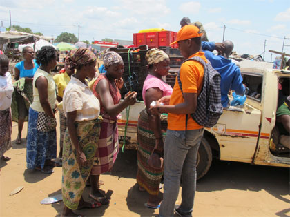 Chúng tôi đến một khu chợ nông thôn tại tỉnh Ma -pu-tô, cách thủ đô Ma -pu-tô khoảng 40km. Đến nơi, chúng tôi thấy một đội bán hàng lưu động mặc áo màu cam sặc sỡ của Công ty Movitel đi mời chào, bán sim điện thoại cho từng người bán cá, từng cô thợ may... tại chợ. Đội bán hàng gây hoạt náo cả khu chợ với tiếng nhạc, tiếng giới thiệu.