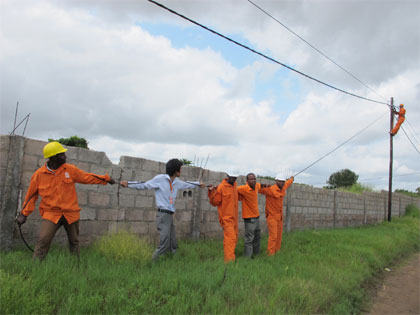 | Các nhân viên của Movitel kéo cáp quang đến khu dân cư vùng nông thôn ở tỉnh Ma-pu-tô. Ảnh: Quang Phương. |